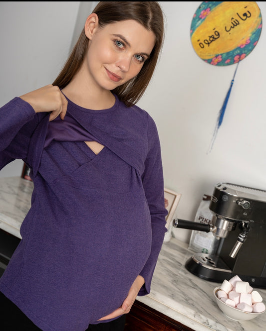 بيجامة كاروه ناعمة للحوامل 1/2 كم